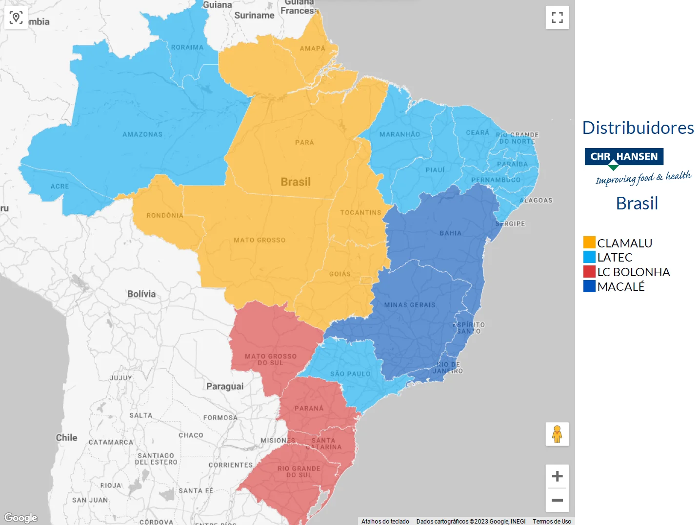 Como o Macalé está em Juiz de Fora, atendemos tradicionalmente o estado de Minas Gerais, além de Rio de Janeiro e Espírito Santo. Mas estamos crescendo: Desde o dia 1º de Julho de 2023, o Macalé é o distribuidor oficial da Chr Hansen no estado da Bahia.